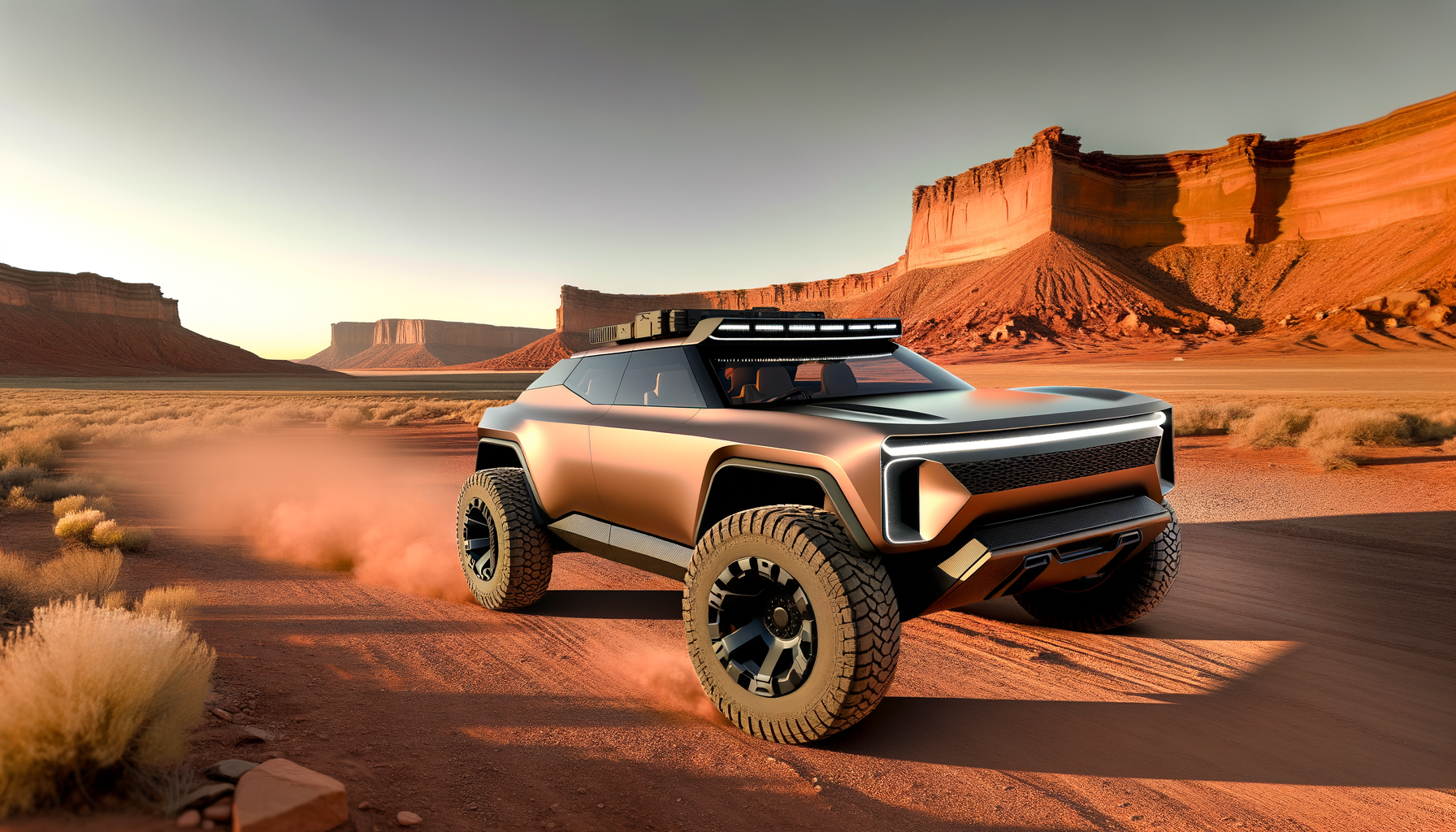 Dens fokus på off-road køreegenskaber, som f.eks. 33-tommer off-road dæk, lavt-gearing-tilstand og bundplader under bilen, adskiller den fra normale el-SUV’er.